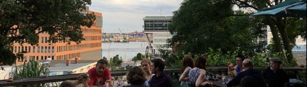 Oder: Hadag, Fähre 61 oder 62 Anleger Dockland. Rechts die Van-Der-Smissen-Straße durch und eine Treppe bergauf. Wer Lust hat auch mit Fahrrad